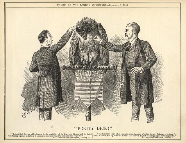 La crisis venezolana de 1895 marcó un momento muy importante en la evolución de la DM, ya que la actitud asumida por el Presidente Grover Cleveland y por el Secretario de Estado Richard Olney durante la crisis llevó la DM a donde nadie antes la había podido llevar. Éstos  declararon la soberanía norteamericana en el Hemisferio Occidental al lograr que los británicos acataran la DM. Cleveland y Olney  expandieron el alcance de la DM usándole como justificación para intervenir en la controversia británica-venezolana, pero también buscaban limitar su alcance para que no fuera usada para justificar intervenciones en América Latina.  Según ellos, Monroe  se limitó a condenar la colonización europea del Hemisferio Occidental y no propuso o justificó la intervención de los Estados Unidos en los asuntos internos de los países de la región.