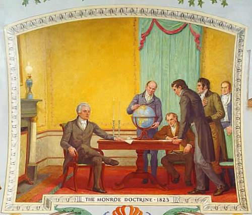 Monroe y su equipo llegaron a la conclusión  de que la seguridad de los Estados Unidos sólo estaría garantizada a través de la creación de un sistema hemisférico controlado por los norteamericanos. Para ello elaboraron una doctrina que mantenía la puerta abierta a la colaboración con Gran Bretaña sin aceptar las condiciones de la propuesta del Ministro George Canning, informaba a la Santa Alianza que los Estados Unidos verían cualquier intervención en Hispanoamérica como una amenaza y dejaba claro que el gobierno norteamericano no intervendría en Europa y, además, respetaría  las posesiones coloniales europeas. En otras palabras, la administración Monroe declaró unilateralmente que el anti-colonialismo y el no-intervencionismo regían en el Hemisferio Occidental, sentando así las bases de la DM: las clausulas de no-colonización y no-intervención. Esta declaración dejó claro lo que los europeos no podían hacer, pero evitó la pregunta de qué haría Estados Unidos, manteniendo la puerta abierta a la expansión territorial.